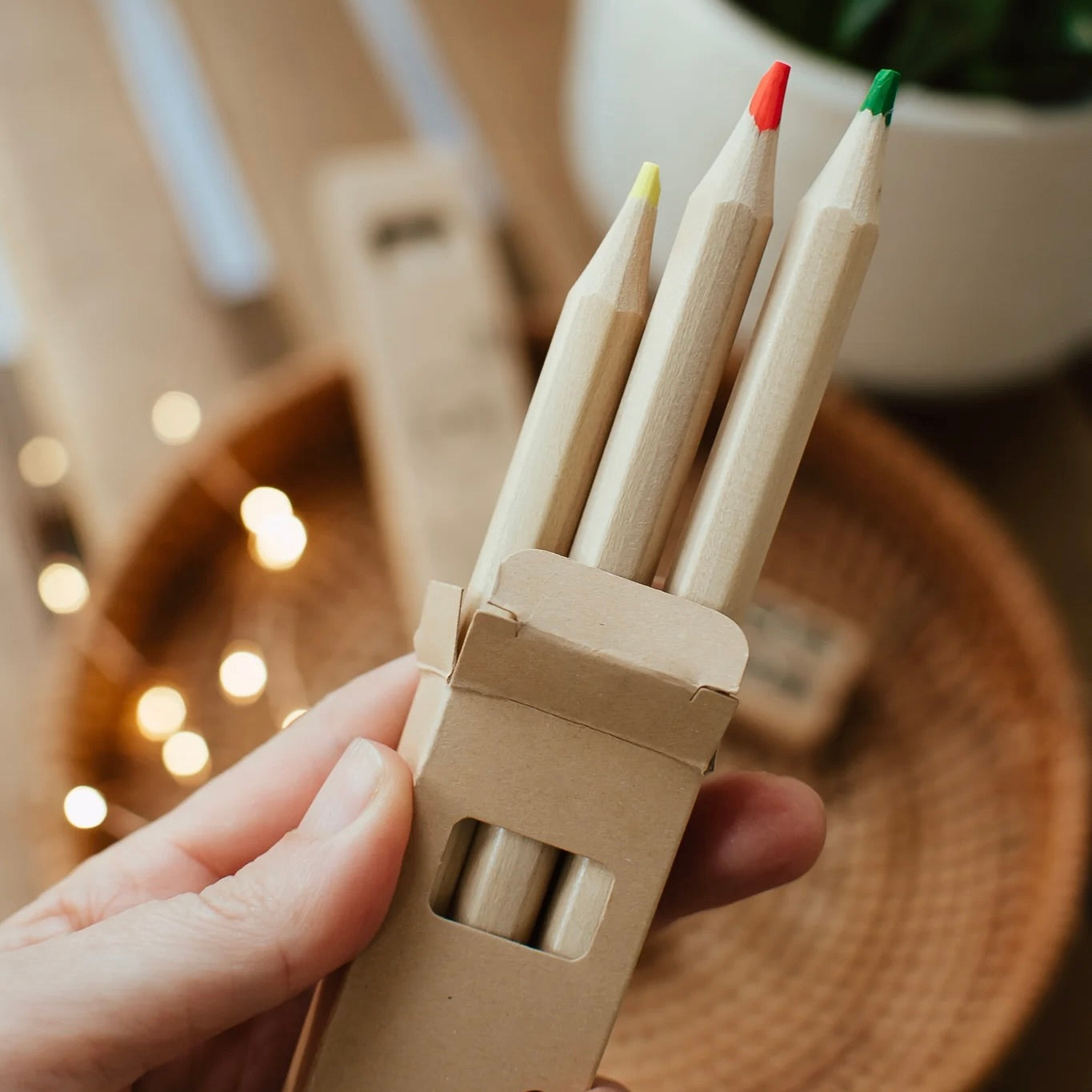 This 3 pack of highlighter pencils reduces the use plastic highlighters that can dry out. Made of FSC certified poplar wood. Includes one pink, one yellow and one green pencil.
