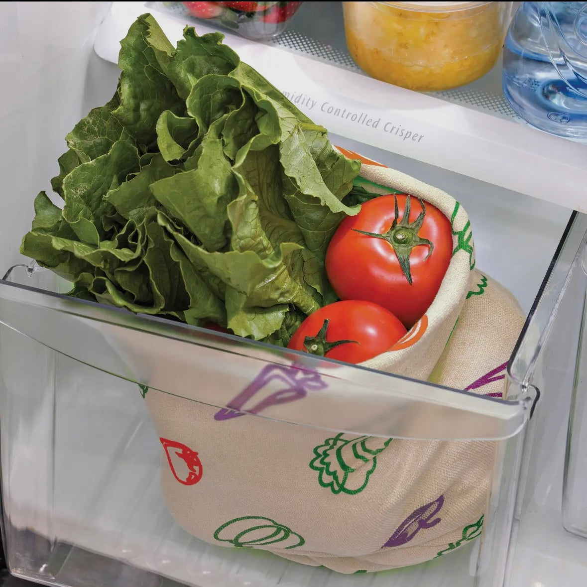 Veggie Sack keeps veggies fresher, longer. The unique, tightly knit fabric blocks out light and absorbs excess moisture, preserving your food freshness.